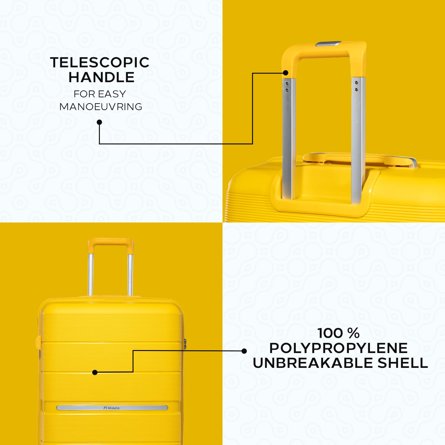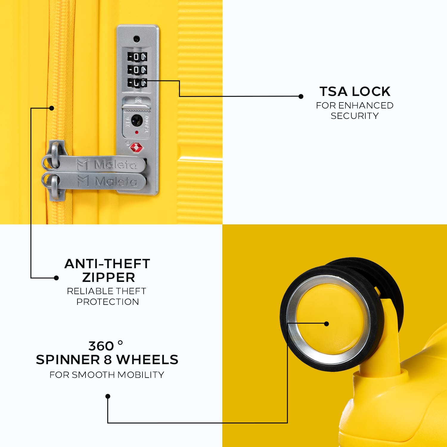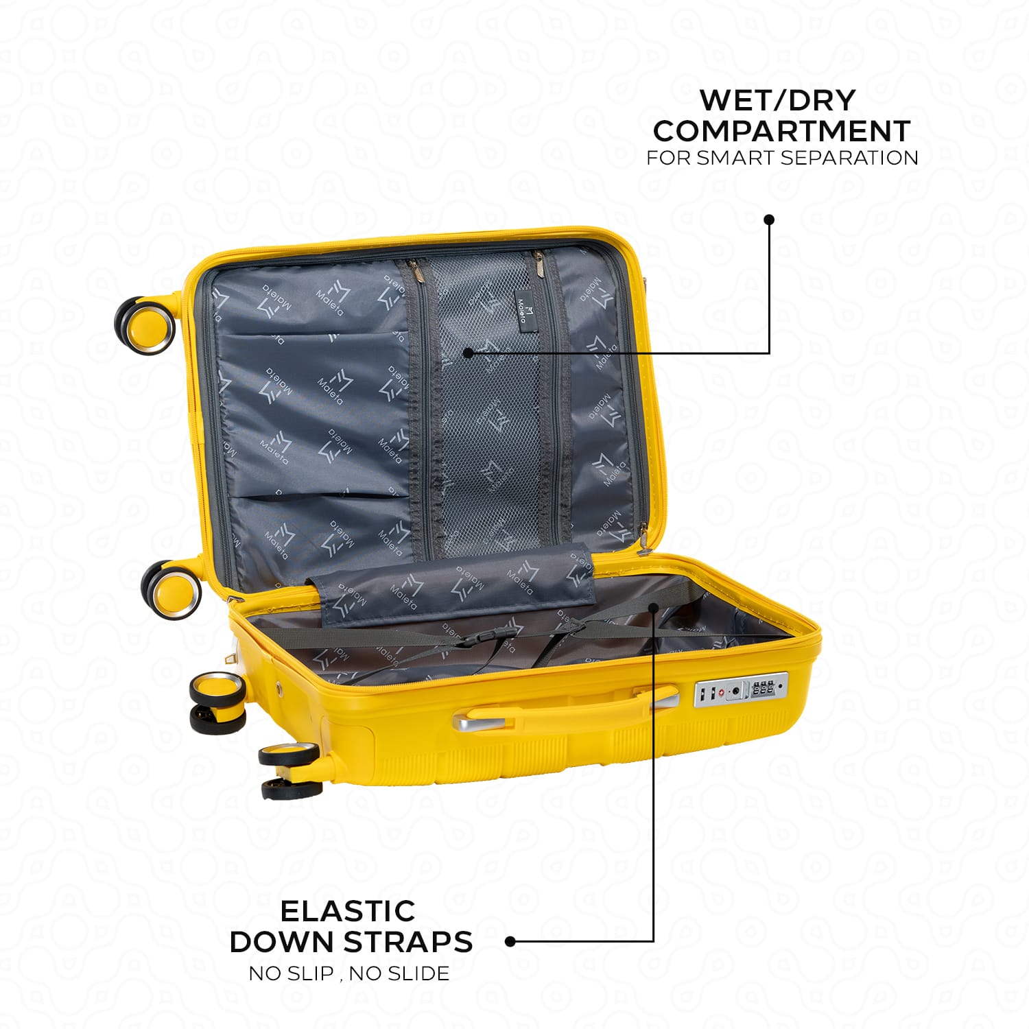 • High-Quality Material and Security: Crafted from durable, lightweight polypropylene (PP), our trolley bag is built to withstand impacts and resist wear and tear. Travel securely with a TSA-approved lock and our innovative anti-theft zipper, designed to safeguard your valuables.